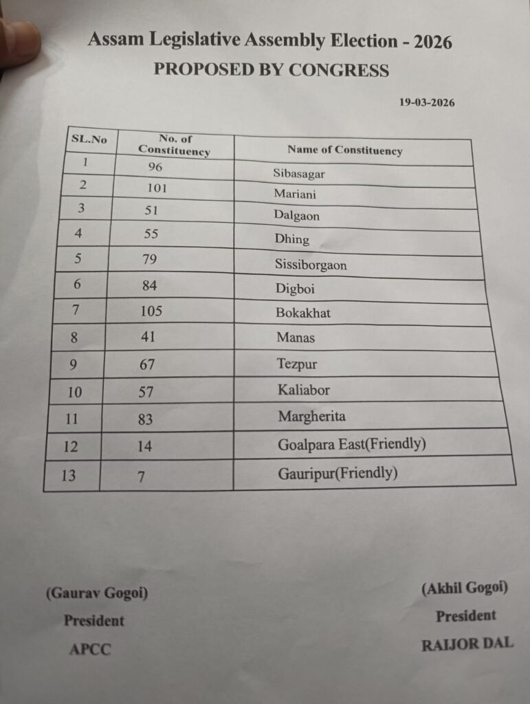 অসমৰ ৰাজনীতিত গুৰুত্বপূৰ্ণ পৰিৱৰ্তন। অৱশেষত চূড়ান্ত ৰূপ লাভ কৰিলে কংগ্ৰেছ আৰু ৰাইজৰ দলৰ মাজত নিৰ্বাচনী মিত্ৰতা। আজি অনুষ্ঠিত যৌথ সংবাদমেলত কংগ্ৰেছ নেতা গৌৰৱ গগৈ আৰু ৰাইজৰ দলৰ সভাপতি অখিল গগৈয়ে এই গুৰুত্বপূৰ্ণ সিদ্ধান্ত ঘোষণা কৰে।
